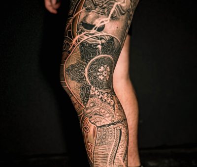 Full Leg Khmer Ornament Tattoo (Khmer: សាក់ពេញជើង ក្បាច់ខ្មែរ:)